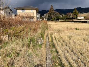 住宅建築時には道路占用許可申請が必要です。前面道路に上下水道管が埋設されていますが、宅内への引込みがありません。下水道の利用には受益者負担金が別途必要です。